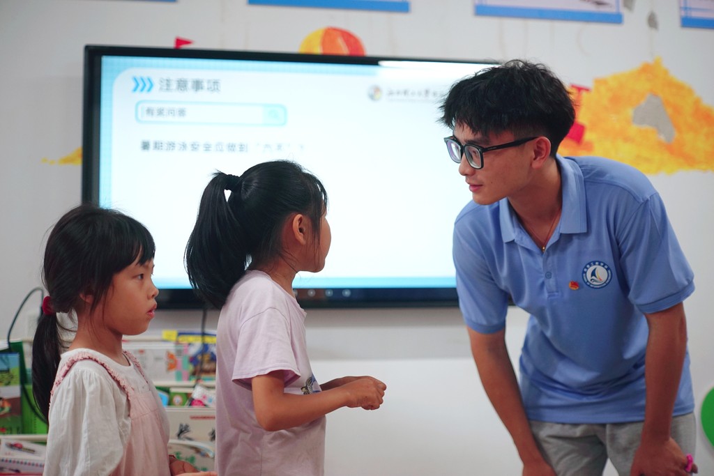 活动结束后,实践队员张阳说道:“最后有一个小女孩轻声问我们明天还会不会来,让我感到欣喜又惶恐,希望短暂陪伴能否在他们心中留下持久的温暖。但转念一想,这次活动不仅仅是为留守儿童的假期添上了多彩的一笔,更重要的是,在他们心灵的田野上播种了爱国、乐观与安全的种子,让爱不再‘留守’。每一位队员,都在精心策划每一个环节的过程中感知,身体力行地展现了青年学子的责任感与使命感,为这些孩子的成长之路铺设了爱的基石,希望这份能量能够激励他们,在未来的日子里,无论身处何方,都能健康、安全、自信地绽放光彩。”(通讯员 周林琪 黄强 熊紫云)