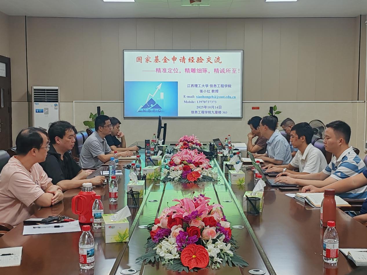 10月14日下午,信息工程学院在九章楼303会议室召开了一场以学科交叉和基金申报为主题的专题会议。会议聚焦学科交叉融合、2026年国家自然科学基金经验交流两大主题。会议由学院副院长许春冬主持,学院院长杨书新和20余名教师参加。